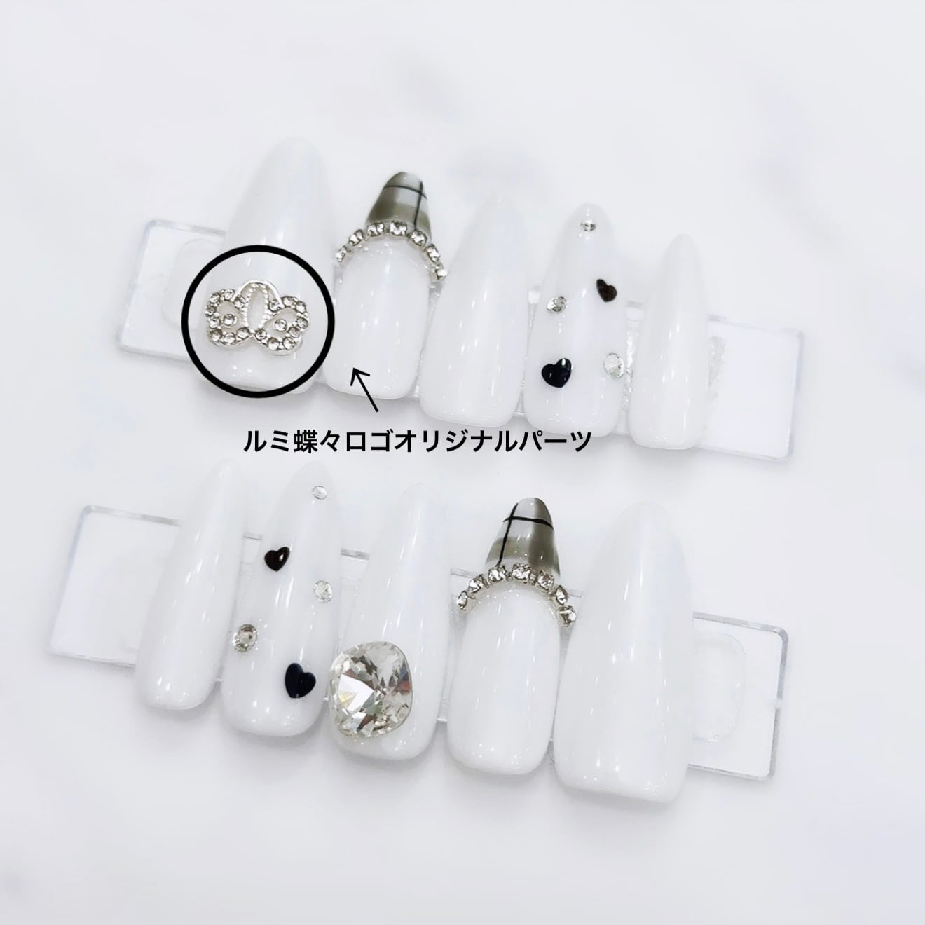 ♥ Lumignon original parts♥ ⟡.·パーツ追加 /変更用パーツ⟡.· -ネイルチップといっしょにカートへ追加ください- アパレルでも大人気な蝶々ロゴデザイン♡◝✩ どのデザインにのせても可愛くときめく・・ 見るたび気分が上がるきらきら具合♪ ルミニョンのお洋服ともあわせやすくかわいい◝✩ 当店でしか叶わないオリジナルパーツです ✔︎ Point ・当店オリジナルルミ蝶々ロゴパーツ ・アパレル連動 ・1点投入でキラキラ豪華に ✔︎size 約5mm×10mm ✔︎color シルバー ※1個あたりの販売価格です。両手に追加される場合は、左右1本ずつカートに追加してください。 ※単品でのご購入はできません。必ずネイルチップと一緒にカートへ追加してください。 単品のみでご購入いただいた場合は、キャンセル処理をさせていただきますのでご了承ください。 ※同じ爪に複数のパーツ追加 /変更の場合は、カートに商品を追加後、備考欄へ記載ください。内容を確認のうえ、こちらからご連絡させていただく場合がございます ※同じデザインを複数ご購入いただいている場合は、どのカラーにどのパーツを載せるかを、カートに商品を追加後、備考欄へご記載ください。内容を確認のうえ、こちらからご連絡させていただく場合がございます。