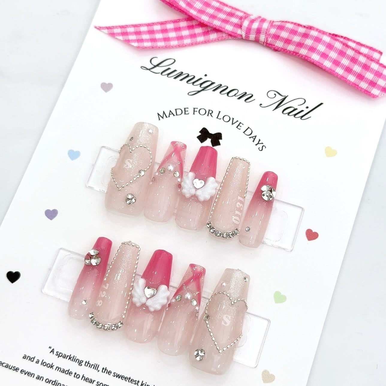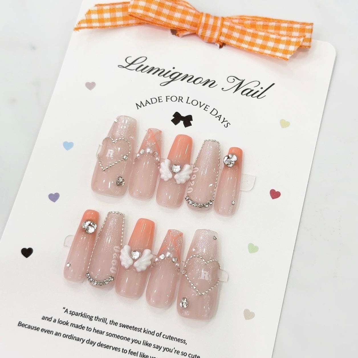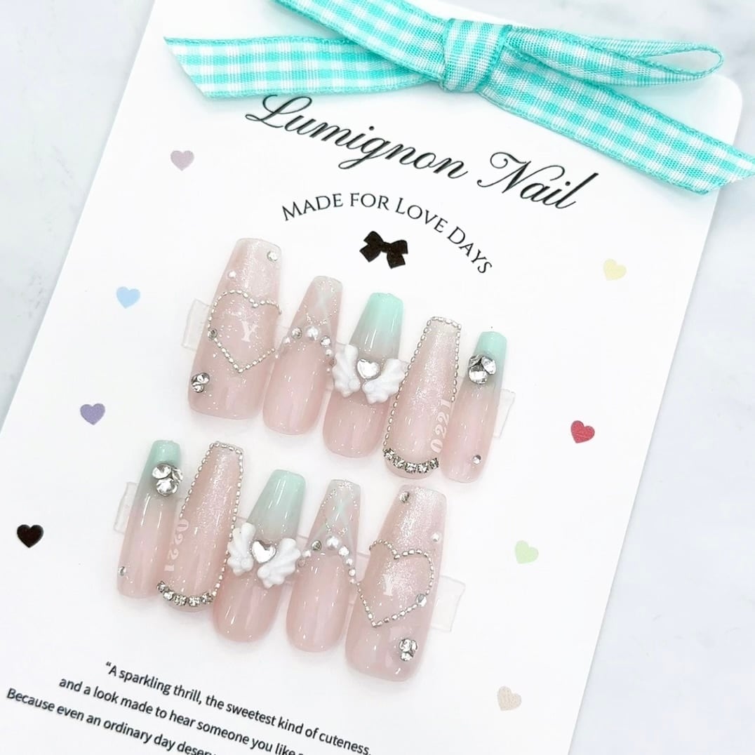 ♥ Loved Otaku course Sep-Nov♥ 現場ネイルはこれ選んで♡ ちゅる艶を残したままメンカラを取り入れられる 量産かわいいオタクネイル⟡.· 左右どちらにもお名前シールを入れられるのが嬉しすぎる♪ トレンドな羽パーツ入り♡ ✔︎ Point ・選べるメンカラジェル ・ハートチェーン×イニシャルシール ・友達とお揃いすると倍かわいい♡ ✔︎color 12種類のメンカラベースをご用意♡ 画像とあわせてご確認くださいませ♪ ※デザインの仕様上こちらのデザインは ブラックカラーに変更が不可となります ※メンカラジェルのカラーを配置する部分にご希望がある方は、BASEのメッセージ機能よりイメージ写真をお送りください ✔︎name seal A-Zにて好きな組み合わせで 左右それぞれ名入れ可能です♡ ※1文字まで ✔︎design Swap 通常は商品ページ2枚目の左右配置となります デザインの入れ替えは片手1箇所ずつ変更可能です♡ ✔︎ image 着用写真は3-6枚目をご覧くださいませ♡ ※Sサイズ/ロングスクエア着用 ーセット内容ー ・ネイルチップ ・粘着グミ 約1回分(12枚1シート) ・粘着シール 約1回分(12枚1シート) ・アルコールシート2回分(2枚) ・スポンジ(1個) ・やすり(1個) ・ウッドスティック(1個) ・ネイルチップ取扱説明書 ・thanksカード(お楽しみに❤︎) ーはじめてご利用の方へー 必ずメニューオプションにて【計測キットあり】 をご選択くださいませ ー計測キット内容ー ・計測用チップ ※カートに追加していただいた長さ×フォルムに合わせて 全サイズチップをお届けします ・粘着グミ 1回分 ・計測かんたんガイド