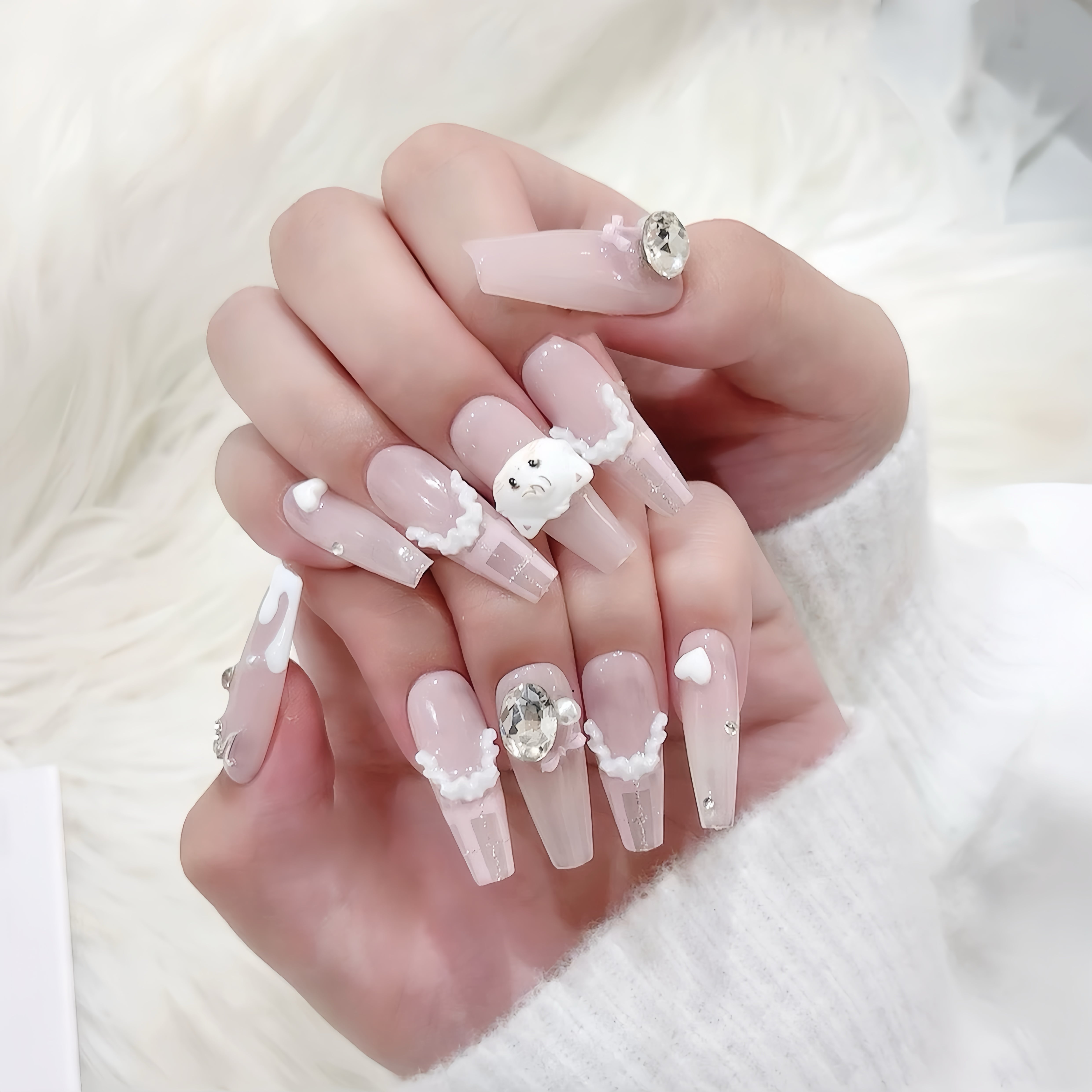 ♥ Lil ala mode × Lumignon ♥ "大人気イラストレーター mikko さん"が描く 『Lil ala mode』 とのコラボ定額チップが 11/1〜12/31限定で登場◝✩ デザインはムースにぴったりの.. フリル・リボン・ツイードなど ガーリーで可愛い世界観をぎゅっと詰め込んだ2種類⟡.· しかもなんと…! ムースの特別なパーツ付き♡♡ Lumignonのお洋服にも相性抜群で とびっきり可愛い指先になれちゃいます⋈*.。 ムースと一緒に楽しめる 特別な1ヶ月をぜひ体験いただけますように♪ ✔︎ Point ・ムースお顔パーツ1個付き ・配色が選べるチェックデザイン ・立体的で可愛いフリルパーツネイル ※ 02番はイニシャルパーツの変更ができず「M」固定となります。イニシャルなしをご希望の方は「イニシャルなし」を選択してください。 ✔︎color 商品画像2枚目の「カラー」からお選びください♡ ✔︎placement 商品画像3枚目の「完成配置イメージ」から お選びください♡ 〜パーツの追加・変更をご希望の方〜 【パーツ追加/変更用の商品ページ】のオプションから 追加または変更したい指(対象の爪) を下記の例を参考に選択してください。 ※ 対象の爪は商品画像3枚目の完成配置イメージに基づきます。 例: ・完成配置イメージで「配置A」を選び、右手薬指のパーツを変更したい場合 → オプションで「右手薬指」を選択 ・完成配置イメージで「配置A」を選び、左手中指にパーツを追加したい場合 → オプションで「左手中指」を選択 ※ムースパーツのお顔は、製造の都合上ひとつひとつに個体差がある場合があります。 ✔︎ image 着用写真は4-5枚目をご覧くださいませ♡ ※Sサイズ/ロングオーバル着用 ーセット内容ー ・ネイルチップ ・粘着グミ 約1回分(12枚1シート) ・粘着シール 約1回分(12枚1シート) ・アルコールシート2回分(2枚) ・スポンジ(1個) ・やすり(1個) ・ウッドスティック(1個) ・ネイルチップ取扱説明書 ・thanksカード(お楽しみに❤︎) ーはじめてご利用の方へー 必ずメニューオプションにて【計測キットあり】 をご選択くださいませ ー計測キット内容ー ・計測用チップ ※カートに追加していただいた長さ×フォルムに合わせて 全サイズチップをお届けします ・粘着グミ 1回分 ・計測かんたんガイド